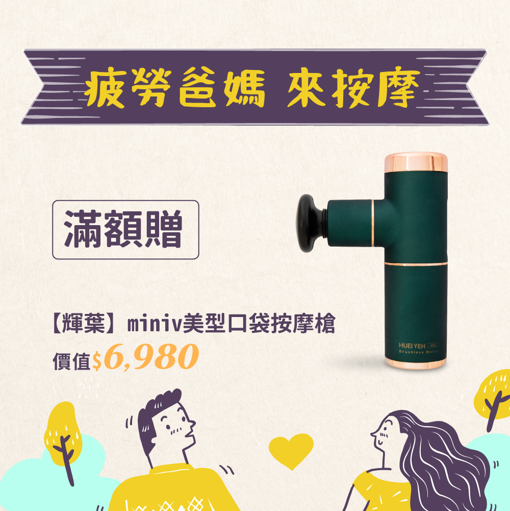 贈【輝葉】miniv 美型口袋按摩槍 (HY-10599A) (原價:$6980 / 贈品顏色隨機出貨)。